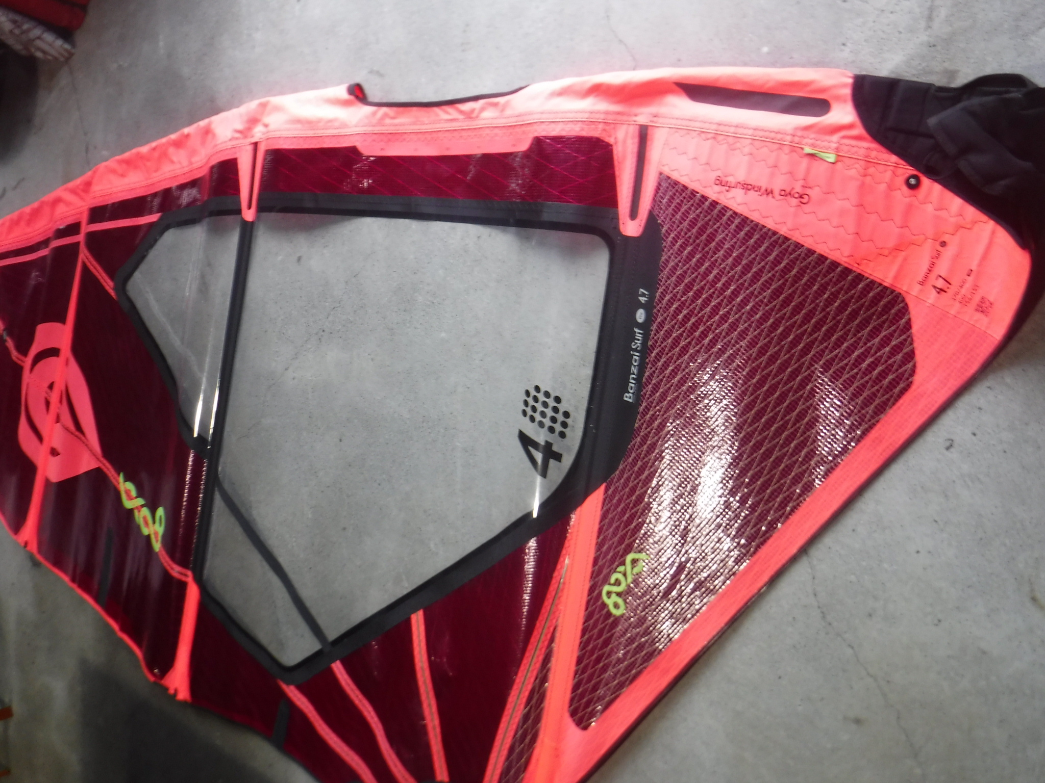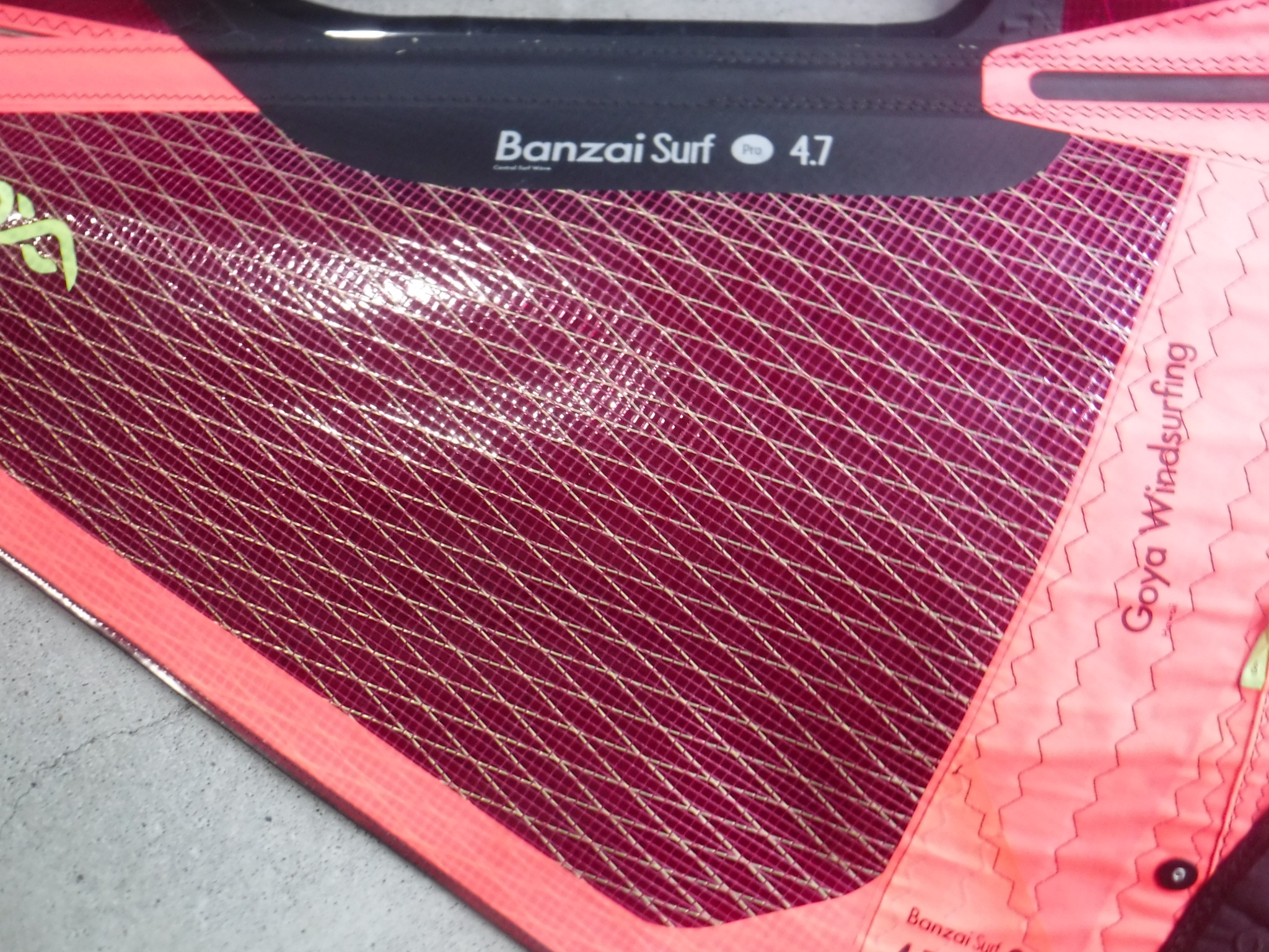 現行モデルのGOYA BANZAI SURF pro 4.7㎡です。かなりキレイなセイルです。フィルムの視界も良好です。